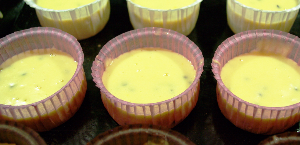 L’impasto è pronto. Potete a questo punto metterlo in una tortiera da 24, uno stampo da plumcake oppure negli stampi da muffin in silicone oppure in quelli usa e getta che vanno anche in forno e non vanno nemmeno imburrati. Io ho scelto dei deliziosi stampini usa e getta, ma solidi (alcuni sono belli, ma appena mettete l’impasto si deformano totalmente) e un po’ arricciati in 3 colori. Un tocco chic, per dei dolcetti super semplici.