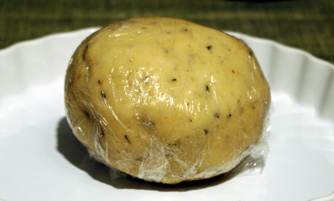 Ho poi aggiunto le uova e dato un’altra mischiata, infine ho messo il burro a pezzetti. Poi si deve iniziare a lavorare molto in fretta con le mani, dentro la ciotola all’inizio e poi sul tavolo. Bisogna essere rapidi nel far assorbire il burro nella farina e creare una palla. Pellicola intorno alla palla e poi in frigo come minimo mezz’ora se possibile anche di più.