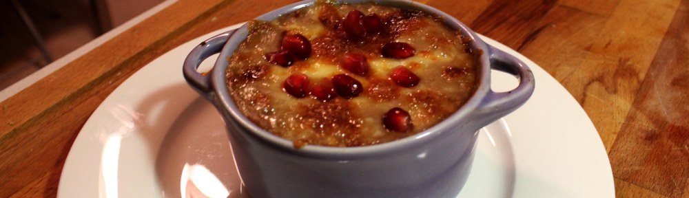 La melagrana è di casa nella mia dispensa (vedi Risotto alla melagrana e Torta salata con salmone e melagrana) e spesso cerco di trovare nuovi modi per inserirla in ricette che ne esaltino il gusto. Così è nata questa vellutata semplice che richiama la classica zuppa di cipolle alla francese per la finitura con il formaggio.